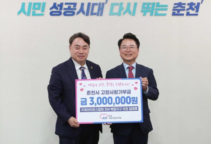 김 의장은 지난 1일 춘천시에 300만 원을 기부했다.