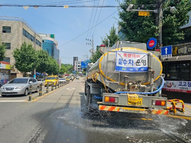 [경남도민뉴스=김태수 기자] 고성군은 연일 이어지는 무더위 속에서 군민 안전확보와 쾌적한 도심 환경 조성을 위해 살수차를 본격적으로 운영하고 있다.