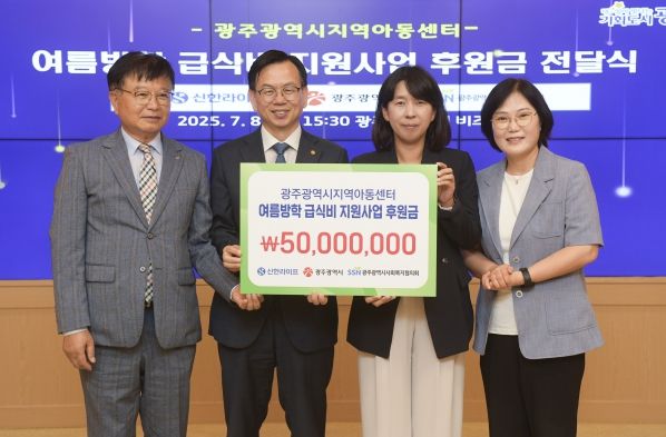 광주광역시(시장 강기정)는 8일 시청 비즈니스룸에서 신한라이프, 광주광역시사회복지협의회와 함께 ‘지역아동센터 후원금 전달식’을 개최했다.