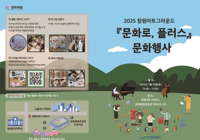 [경남도민뉴스=박민호 기자] 창원특례시는 여름방학을 맞아 시민과 함께하는 문화콘텐츠 행사 ‘문화로, 플러스’를 오는 7월 19일 창원아트그라운드(창원종합운동장 지하보도)에서 개최한다.