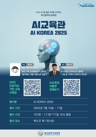 [경남도민뉴스=김채연 기자] 부산광역시교육청은 15일부터 17일까지 벡스코 제1전시장에서 열리는‘K-ICT WEEK in BUSAN 2025’행사에 인공지능 교육 사례 공유와 가치 확산을 위한 ‘AI 교육관’을 운영한다고 밝혔다.