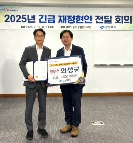 [경남도민뉴스=장강동 기자] 의성군은 경상북도가 실시한 ‘2025년 상반기 신속집행·2분기 소비투자 평가’에서 최우수 기관에 선정됐다고 밝혔다.
