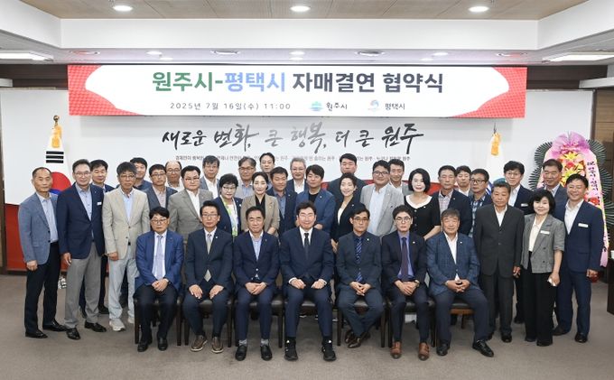 이날 협약식은 원강수 원주시장, 조용기 원주시의장, 정장선 평택시장, 강장구 평택시의장을 비롯한 관계자와 민간단체 대표 등 50여 명이 참석한 가운데, 두 도시 간의 상생 협력을 다짐하는 뜻깊은 자리로 진행됐다.