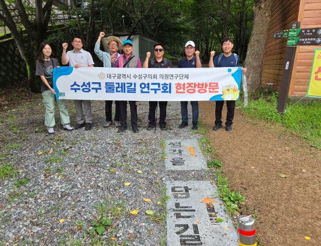 [경남도민뉴스=백상현 기자] 대구 수성구의회 의원연구단체 ‘수성구 둘레길 연구회’가 수성구 대표 둘레길인 ‘생각을 담는 길’ 진밭골길(6코스)을 찾아 현장 점검에 나서며 둘레길 활용 방안을 모색했다.