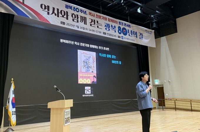 [경남도민뉴스=최현인 기자] 광주시교육청은 16일 전일빌딩245 다목적강당에서 교원을 대상으로 ‘박광일 작가와 함께하는 역사 토크 콘서트’를 진행했다.
