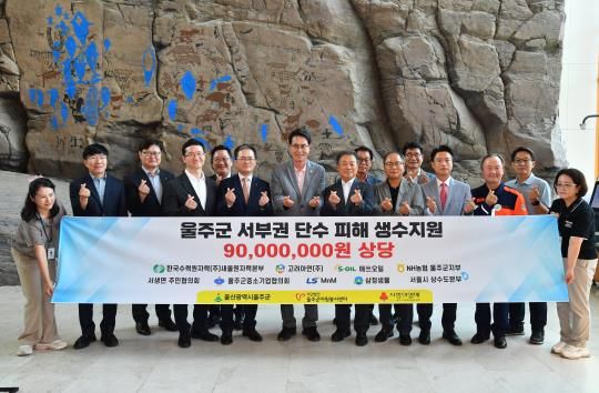 지역주민들이 단수로 인해 큰 불편을 겪자 각 기업과 기관들은 긴급 지원을 통해 울주군에 총 9천50만원 상당의 생수를 전달했다.