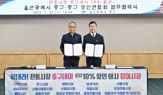 김영길 중구청장은 “이번 행사가 울산페이, 민생회복 소비쿠폰과 연계해 지역 경제에 새로운 활력을 불어넣는 기회가 되길 희망한다”며 “앞으로도 지역경제 살리기 및 소상공인 지원에 최선을 다하겠다”고 밝혔다.