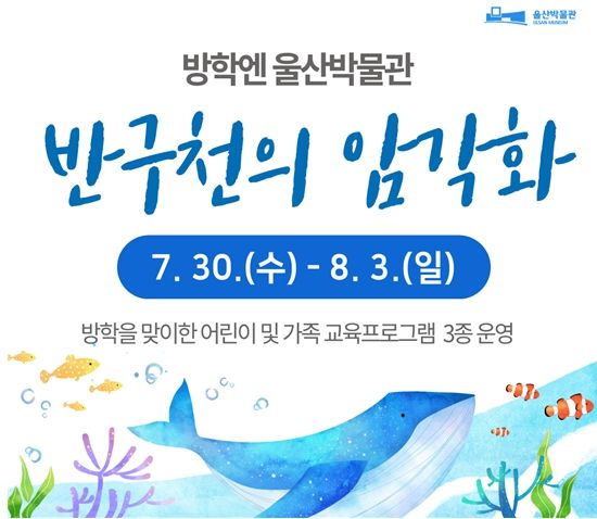 울산박물관 관계자는 “여름방학을 맞아 시원한 박물관에서 반구천 암각화의 역사적 가치를 다양한 감각으로 체험해 볼 수 있는 기회를 마련했다”라며 “시원한 박물관에서 지역 정체성을 이해하고 문화시민으로서의 자긍심을 키우시길 바란다”라고 말했다.