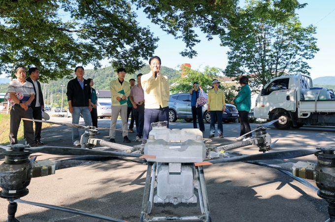 이병환 성주군수는 “벼 병해충 피해를 줄이기 위해 철저한 예찰과 시기적절한 방제에 힘쓰고 있다.”며, “드론방제가 효과적으로 이루어질 수 있도록 현장관리에도 최선을 다하겠다.”고 밝혔다.