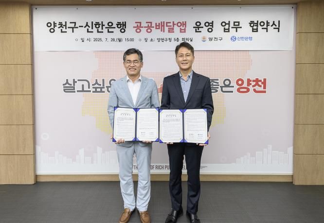 [경남도민뉴스=류종길 기자] 양천구는 지난 28일 신한은행과의 업무협약을 통해 민관협력형 공공배달앱을 도입하고, 지역 내 소상공인과 소비자 상생을 위해 오는 8월 8일부터 배달전용 ‘양천땡겨요상품권’을 발행한다.