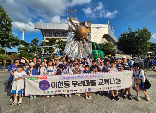 [경남도민뉴스=백상현 기자] 대구 남구는 2025년 우리마을 교육나눔사업의 일환으로 관내 3개(이천동, 대명5동, 대명6동)동의 초등학생부터 고등학생까지 150여 명의 학생과 가족들이 함께 야구장을 찾아 생생한 경기의 열기를 경험했다고 밝혔다.