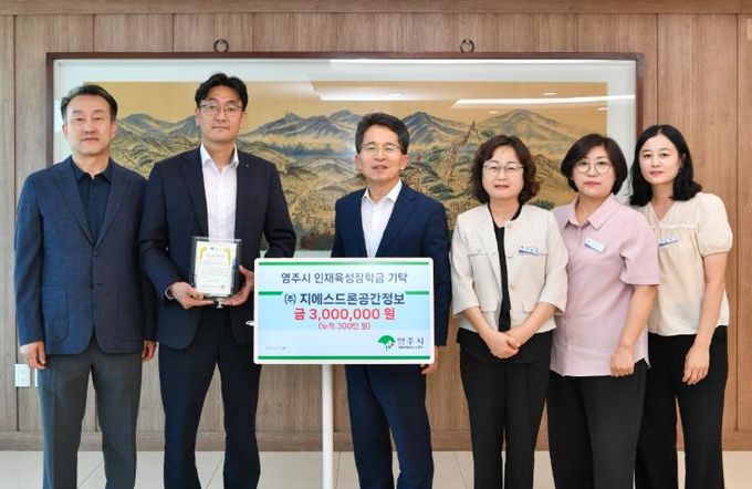[경남도민뉴스=오창경 기자] (재)영주시인재육성장학회는 지난 7월 29일, ㈜지에스드론공간정보로부터 지역 인재 육성을 위한 장학금 300만 원을 기탁받았다고 밝혔다.