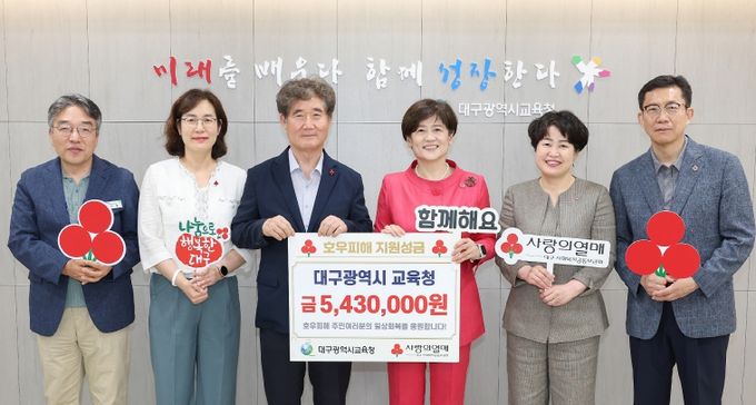 강은희 교육감은 “작은 정성이지만 피해를 입은 이웃들에게 따뜻한 위로와 희망이 되길 바란다.”며, “앞으로도 교육가족과 함께 나눔과 연대의 가치를 실천해 나가겠다.”고 말했다.