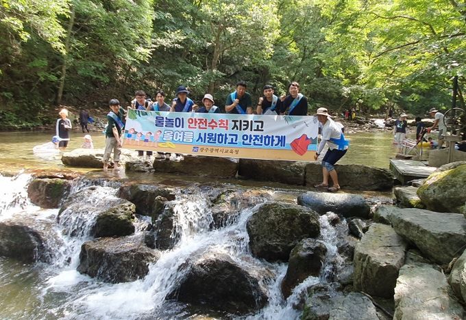 [경남도민뉴스=최현인 기자] 광주시교육청은 30일 전북 강천사 계곡에서 ‘물놀이 안전사고 예방 캠페인’을 실시했다.