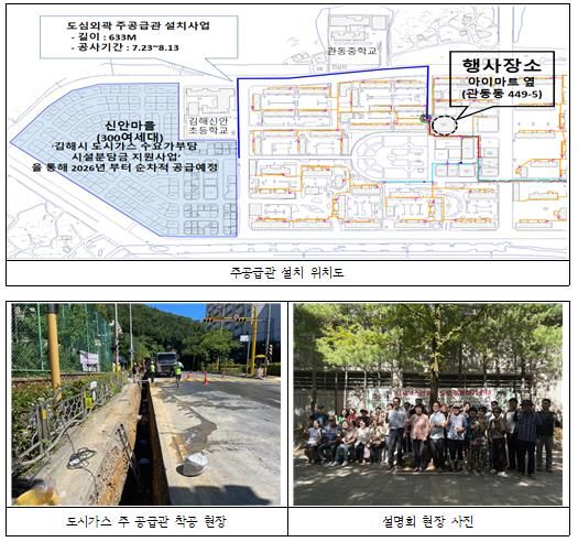 [경남도민뉴스=최미정 기자] 김해시는 지난 29일, 2025년 도심 외곽 도시가스 주 공급관 설치 사업의 일환으로 관동동 434 일원에 도시가스를 보급하는 주 공급관 설치 착공을 기념해 설명회를 개최했다고 밝혔다.