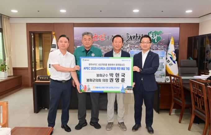 [경남도민뉴스=장강동 기자] 박현국 봉화군수, 권영준 봉화군의회 의장이 올가을 경북 경주에서 개최하는 APEC 성공적 개최를 응원하고자 NH농협은행에서 출시한 'APEC 2025 KOREA 성공개최를 위한 예금'가입에 동참했다.