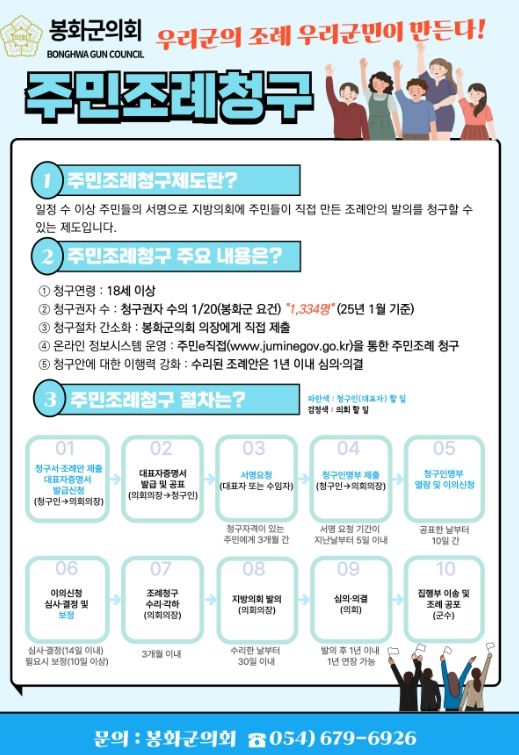 [경남도민뉴스=장강동 기자] 봉화군의회는 군민들이 직접 봉화에 필요한 조례를 만드는 ‘주민조례청구제도’홍보 강화한다고 밝혔다.