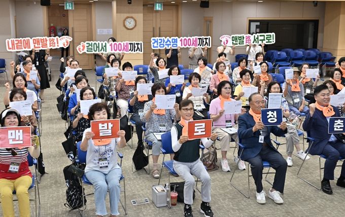 ‘맨발로 청춘학교’는 맨발걷기를 통해 주민 스스로 건강을 관리하도록 돕는 주민참여형 건강증진 프로그램으로 주민 45명이 참여혀며 10월 2일까지 9주간 매주 목요일마다 운영된다. 주요 내용은 ▲맨발걷기와 건강관리 이론교육 ▲멘토와 함께하는 현장실습 ▲맨발걷기교육지도사 자격증 취득 과정 등으로 구성됐다.