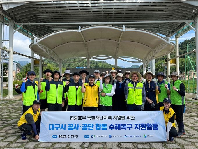 이번 봉사활동에는 대구공공시설관리공단, 대구도시개발공사, 대구교통공사, 대구농수산물유통관리공사 소속 임직원 각 5명씩 총 20명이 참여해 침수 가구 주변 정비 및 토사 제거 등 복구 작업에 힘을 보탰다.