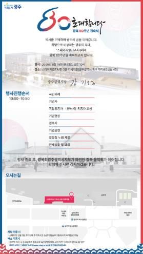 항일·민주정신과 촛불로 민주주의를 지켜온 광복 이후 광주의 80년을 기억하고, 인공지능(AI)과 미래차 등 첨단산업, 문화 역량으로 펼쳐갈 앞으로의 80년에 대한 희망을 담았다.