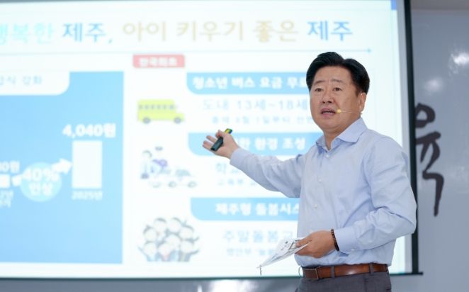 제주도는 교육청과의 협력을 통해 △학교 급식 단가 40% 인상 △13~18세 청소년 버스요금 무료화 △학교안전경찰관제 확대 △주말돌봄 ‘꿈낭’과 ‘제주가치 통합돌봄’ 확대 등 성과를 거뒀다.