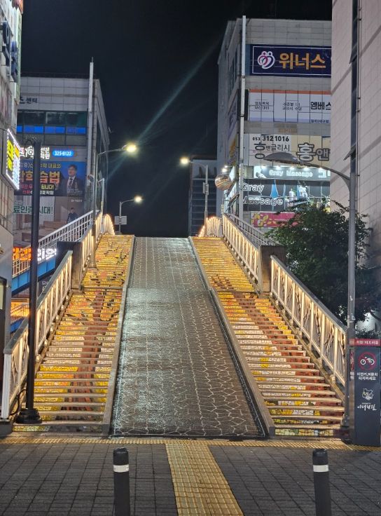 또한 동천육교는 보행환경 개선을 위해 바닥을 재포장하고, 특히육교 계단에는 소설가 이태원선생의 대표적 작품인 ‘객사’속의 은행나무와 강·바다를 모티브로 한 작품을 파타일로 표현하여 볼거리를 제공했다.