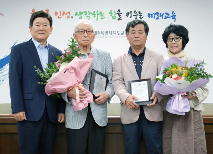 [경남도민뉴스=하형수 기자] 제주특별자치도교육청은 12일 도교육청 상황실에서 제주교육 발전에 기여한 재일제주인 고(故) 강성홍 선생과 고(故) 양종찬 선생에게 교육감 감사패를 수여했다.