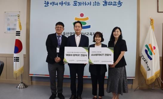 [경남도민뉴스=최재경 기자] 울산 강남교육지원청은 14일 교육장실에서 굿네이버스 울산지부와 취약계층 학생을 위한 식사와 위생용품 지원 전달식을 열었다.