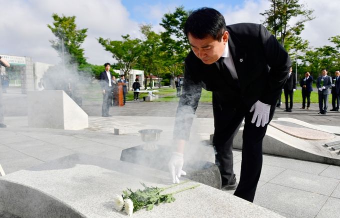 [경남도민뉴스=최현인 기자] 이정선 광주시교육감은 15일 광복80주년을 맞아 상무시민공원 광주독립운동기념탑을 참배했다.