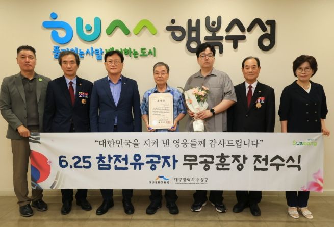 [경남도민뉴스=백상현 기자] 대구 수성구는 지난 14일 6·25 전쟁에 참전해 공을 세운 고(故) 전제일 상병의 유가족에게 화랑무공훈장과 증서를 전수했다.