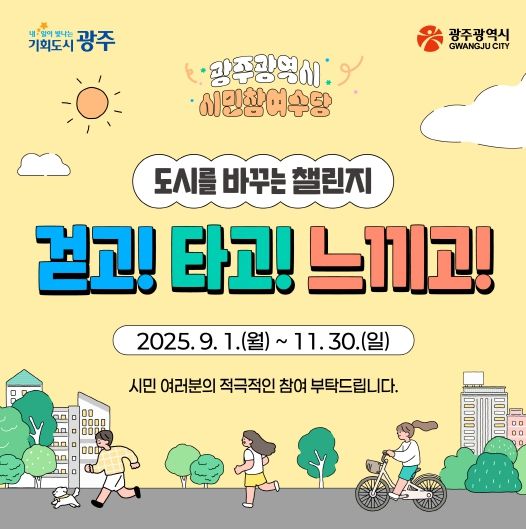광주광역시는 시민이 일상 속에서 자발적으로 참여하는 공익활동을 장려하고, 건강한 도시 문화를 확산하기 위해 ‘2025년 시민참여수당 시범사업’을 오는 9월 1일부터 11월 30일까지 3개월간 운영한다.