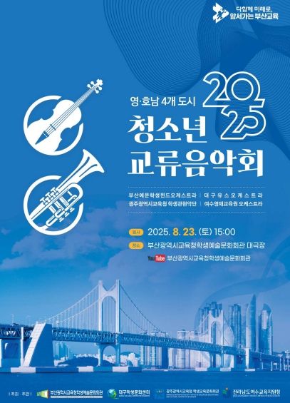 [경남도민뉴스=김채연 기자] 부산광역시교육청학생예술문화회관은 오는 23일 오후 3시 부산학생예술문화회관 대극장에서 ‘2025 영·호남 4개 도시 청소년 교류음악회’를 개최한다.