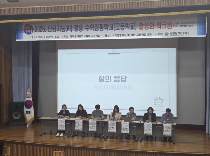 [경남도민뉴스=백상현 기자] 대구시교육청이 8월 20일·26일·28일에 대구창의융합교육원에서 각 일자별 고등학교·중학교·초등학교 교원을 대상으로 ‘2025 인공지능(AI) 활용 수학점핑학교 활성화 워크숍’을 개최한다.