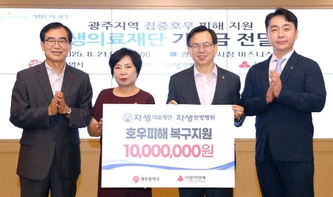 [경남도민뉴스=최현인 기자] 광주광역시는 자생의료재단이 집중호우로 피해를 입은 지역사회를 돕기 위해 1000만원의 성금을 기탁했다고 21일 밝혔다.