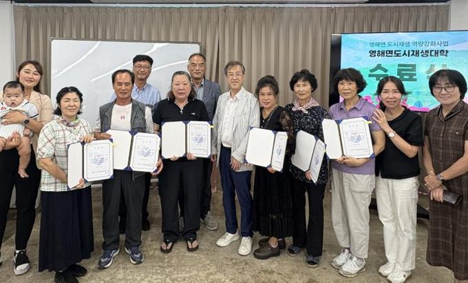 [경남도민뉴스=장강동 기자] 영덕군은 영해면 도시재생 뉴딜사업의 주민 역량강화사업의 일환으로 6월부터 8월까지 진행한 ‘도시재생 대학 마을 가꾸기 과정’의 수료식을 지난 22일 영해면 창업상권활성화센터 2층에서 개최했다.