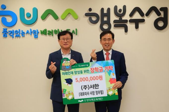 [경남도민뉴스=백상현 기자] ㈜서한은 지난 22일 미래 인재 육성과 지역 교육 경쟁력 강화를 위해 장학금 500만 원을 수성미래교육재단에 기탁했다.