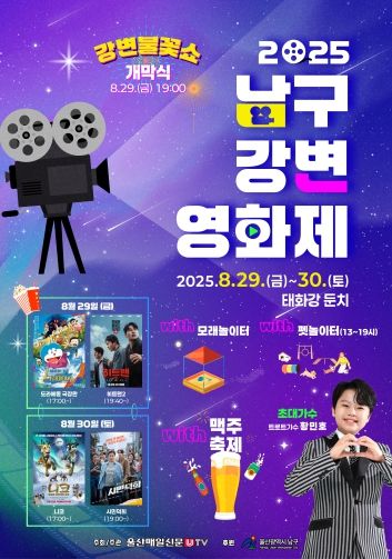 [경남도민뉴스=최재경 기자] 울산 남구는 오는 29일과 30일까지 이틀간, 태화강 제1둔치에서 구민들과 함께하는 2025 강변영화제를 개최한다고 밝혔다.