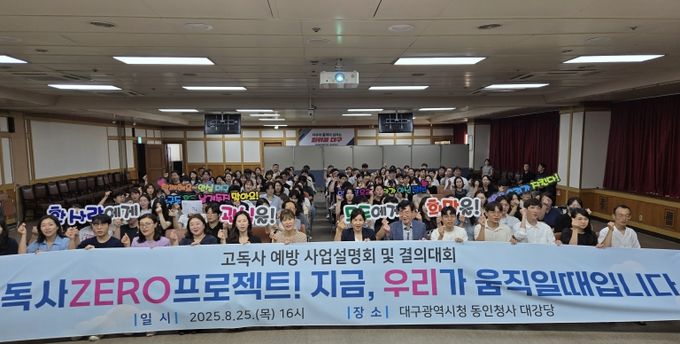 [경남도민뉴스=백상현 기자] 대구광역시는 8월 25일, 대구시청 동인청사에서 9개 구·군 읍·면·동 고독사 예방사업 담당 공무원 160여 명과 함께 ‘2025년 고독사 예방사업’ 추진계획을 공유하고 의견을 수렴하는 사업설명회 및 결의대회를 개최했다.
