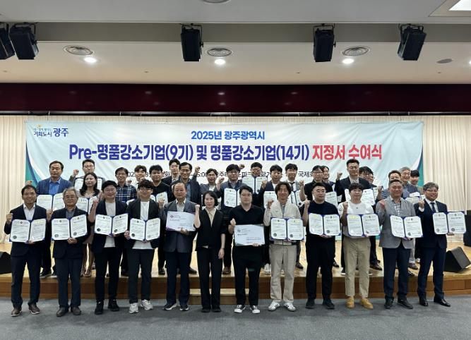 [경남도민뉴스=최현인 기자] 광주광역시는 지역경제를 이끌 ‘제9기 프리(Pre)-명품강소기업’ 13개사와 ‘제14기 명품강소기업’ 19개사를 선정, 26일 광주테크노파크에서 ‘지정서 수여식’을 개최했다.