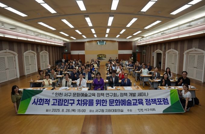 [경남도민뉴스=김용욱 기자] 인천 서구의회 의원연구단체 '서구 문화예술교육 정책 연구회(대표의원 김미연)'는 28일 ‘사회적 고립인구 치유를 위한 문화예술교육 정책포럼’을 개최했다.