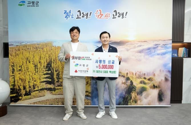 [경남도민뉴스=최민숙 기자] ㈜ 대전사에서 8월 28일 고령군청을 방문하여 어려운 이웃들을 위해 사랑의 성금 500만원을 기탁했다.