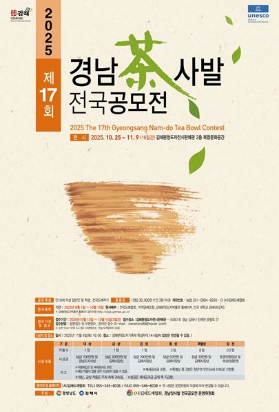 [경남도민뉴스=최미정 기자] 김해시는 경남도와 공동 주최하고 (사)김해도예협회(이사장 배창진)가 주관하는 ‘제17회 경남 찻사발 전국 공모전’을 개최한다고 1일 밝혔다.
