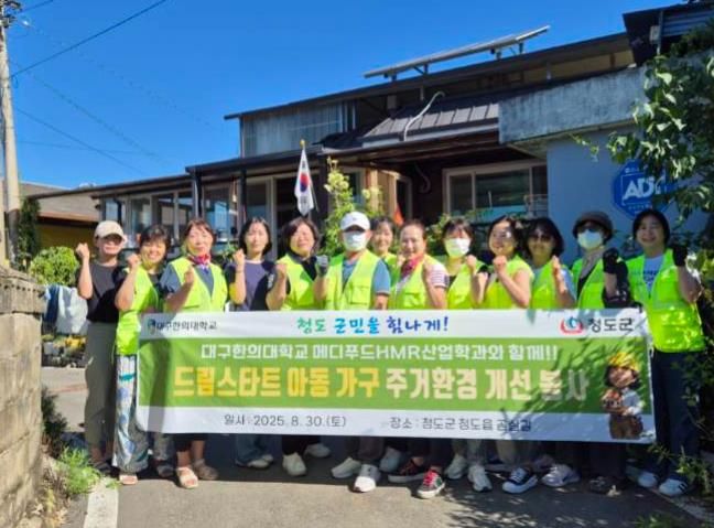 [경남도민뉴스=최민숙 기자] 대구한의대학교 메디푸드HMR산업학과 동아리‘푸드&메디쓰’는 지난 30일 청도군 드림스타트 아동을 위한 주거환경 개선 봉사활동을 실시했다.