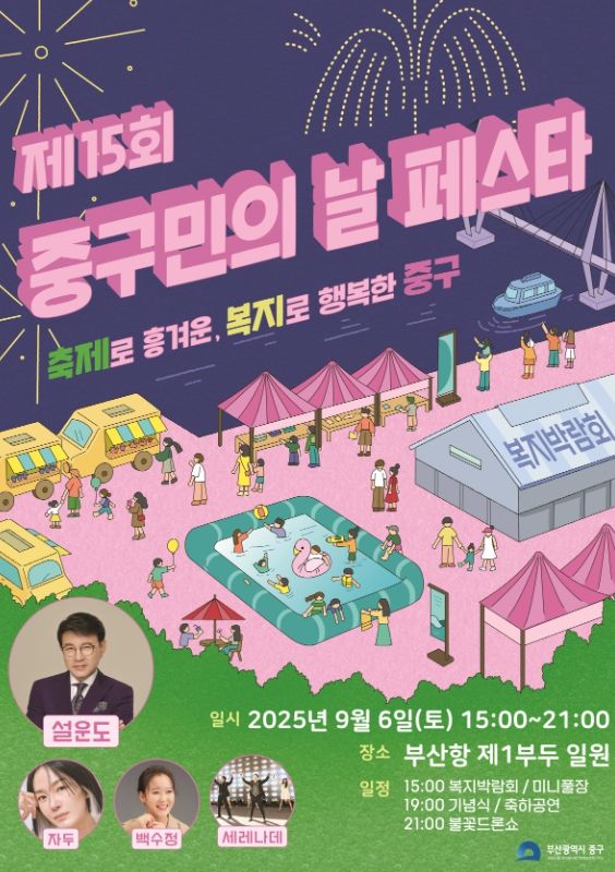 [경남도민뉴스=신석주 기자] 부산광역시 중구는 다가오는 9월 6일 중구민의 날(제정 9월 1일)을 기념하여 온 구민이 참여하고 즐길 수 있는 “제15회 중구민의 날 페스타”행사를 개최한다.
