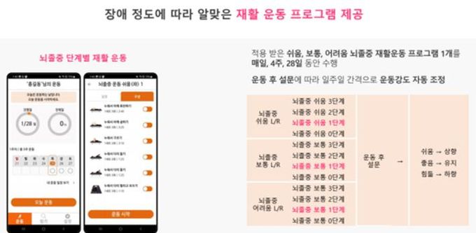 이 서비스는 지역사회중심재활사업의 하나로 독립적 운동이 가능한 뇌병변장애인을 대상으로 매일 30분씩 8주 동안(56일) 모바일 앱을 활용한 맞춤형 재활운동을 제공한다.