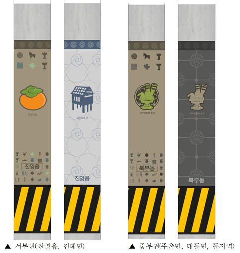 가이드라인은 김해시를 중부・북부・서부・남부 4개 권역으로 구분, 권역별 출토 유물 유형과 가야문양을 활용한 상징패턴을 적용한 것이 특징으로 어린이・노인보호구역에 특화된 다지인을 포함해 총 12종의 표준안을 제시했다.