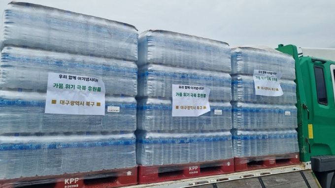 [경남도민뉴스=백상현 기자] 대구 북구청은 9월 9일 심각한 가뭄으로 생활용수 부족과 제한급수에 직면한 자매도시 강릉시에 긴급 구호물품으로 2리터 생수 3,726병을 지원했다.