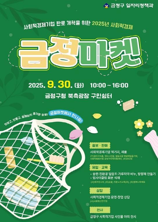 [경남도민뉴스=신석주 기자] 부산시 금정구는 지역 사회적경제기업의 판로 확대와 주민 인식 제고를 위해 『2025년 사회적경제 금정마켓』을 개최한다.