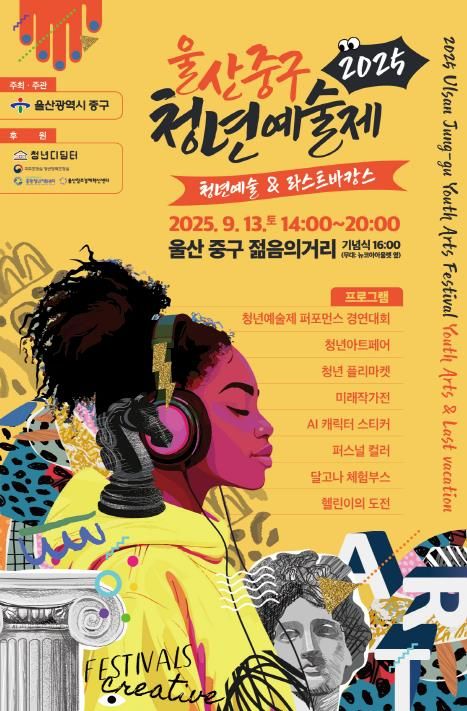 [경남도민뉴스=최재경 기자] 울산 중구가 오는 9월 13일 오후 2시부터 8시까지 중구 성남동 젊음의거리 일원에서 ‘2025 울산 중구 청년예술제’를 개최한다.