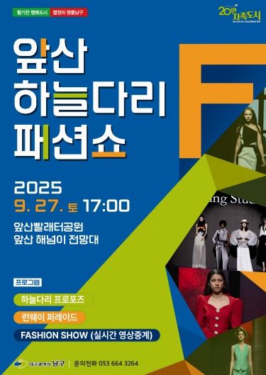 [경남도민뉴스=백상현 기자] 대구 남구는 오는 9월 27일 지역의 대표 관광명소인 앞산빨래터공원에서 하늘다리 패션쇼와 프러포즈 이벤트를 개최한다고 밝혔다.